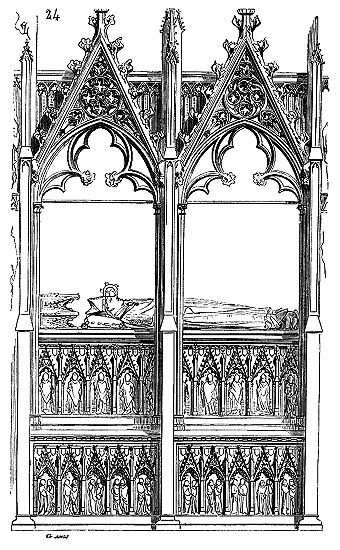 Les génies des deux peuples se montrent ainsi de part et d'autre avec leurs qualités et leurs défauts. On n'est point surpris toutefois que les hommes qui déjà possédaient un esprit collectif et simplificateur aussi manifeste fussent également pénétrés de ce sentiment de discipline et d'ordre qui nous fut si funeste aux journées de Crécy et de Poitiers. Tout se tient dans l'histoire d'un peuple, quand on y veut regarder de près, et c'est ce qui fait de l'étude de l'architecture de ces temps, si complétement empreinte du génie des peuples qui la pratiquaient en France et en Angleterre, un sujet inépuisable d'observations intéressantes.