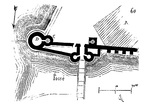 Réunissant les renseignements que nous avons pu nous procurer sur le Temple de Paris 9, nous donnons le plan de l'église (fig. 1). La rotonde datait de la première moitié du XIIe siècle. Après la sortie des templiers de la Palestine, cette rotonde fut augmentée au porche A, dont parle Sauval, et un peu plus tard de la grande nef B. Le bas du clocher C datait également du XIIe siècle, et l'étage du beffroi du commencement du XIIIe siècle.