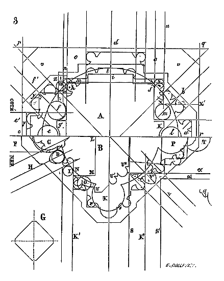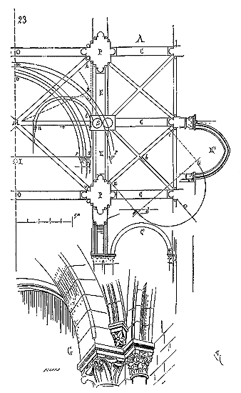 En Angleterre, l'adoption de ce système s'était combinée avec une disposition particulière à cette contrée, de rangs de moellons des voûtains (voyez CONSTRUCTION, fig. de 62 à 72); ce qui amena des combinaisons de voûtes tout à fait différentes de celles admises par l'école française.