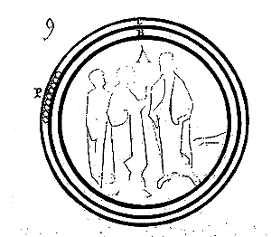 Il ne faut pas oublier que les fondateurs de l'ordre du Temple étaient au nombre de neuf (carré de 3), qu'il ne leur fut permis d'ordonner de nouveaux frères qu'après neuf années, et que les nombres 3 et 9 se retrouvent fréquemment dans les chapelles des commanderies. La grande rotonde de Paris possédait à l'intérieur six piliers, et extérieurement douze travées (fig. 1). Son tracé n'avait pu être obtenu donc que par deux triangles équilatéraux se pénétrant, ainsi que l'indique la figure 3.