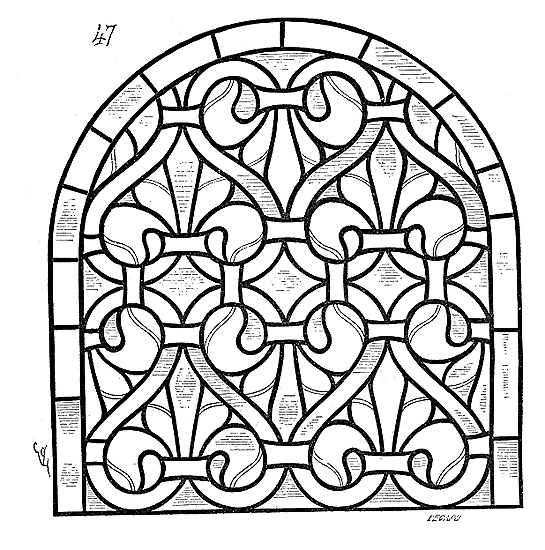 On a vu dans la figure 35 comment les constructeurs anglais, ayant adopté une seule courbe composée pour tous les arcs d'une voûte, appliquaient même parfois cette courbe au formeret, et par suite à l'archivolte de la fenêtre ouverte sous ce formeret. C'est un procédé simplificateur de construction des voûtes, qui n'exigeait qu'une seule épure pour tous les arcs, qui explique pourquoi beaucoup de ces archivoltes des fenêtres appartenant à des édifices voûtés au XIVe siècle sont obtenues au moyen de courbes composées. Il y a, dans cette forme observée par tous, ceux qui ont visité l'Angleterre, non pas un caprice, une question de goût, mais l'application rigoureuse d'un système suivi, comme nous venons de le démontrer, avec un esprit méthodique rigoureux dans ses déductions. Une fois la courbe admise par une nécessité de construction, on s'y habitua et l'on s'en servit dans des circonstances non commandées par le système de structure.