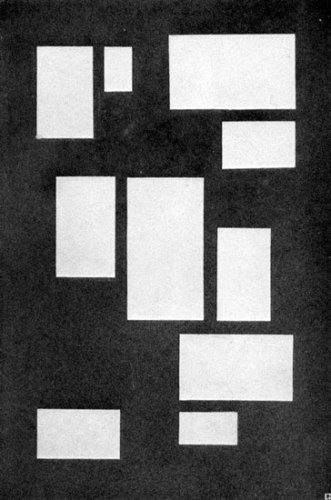Let us discover the embodiment of these qualities of design with a simple experiment. Cut from black, dark gray, and light gray cover paper a miscellaneous assortment of small pieces as shown in Fig. 3. This group of squares, oblongs, triangles, diamonds, circles, and whatnot has none of the qualities of design as it appears in Fig. 3.