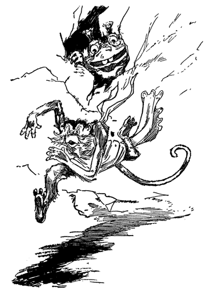 "Come along, then!" cried Polychrome from the window, and the others, realizing the wisdom of the Scarecrow's speech, took leave of Nimmie Amee, who was glad to be rid of them, and said good-bye to her husband, who merely scowled and made no answer, and then they hurried from the house.