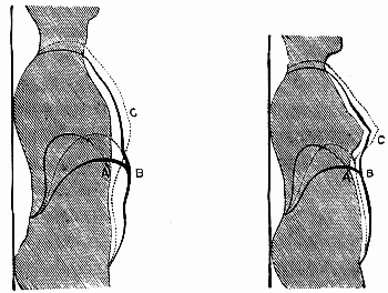 By way of illustrating this curious difference of breathing in men and women, the following anecdote, which has the recommendation of being strictly true, may perhaps amuse the reader. Some time ago a troupe of "Female Minstrels," calling themselves, I believe, "The American Amazons," made a tour through this country. Their faces were blackened in the orthodox fashion, and they were in male attire, wearing tight-fitting garments of a peculiar kind. Two friends, both medical men, went to hear them (or perhaps to see them, I am not sure which), when Mr. A remarked that two of the performers were men. Mr. B did not see it, even when the individuals were pointed out to him, and asked his friend for the reasons for his opinion. "Why," said Mr. A, "I see it by their abdominal breathing!" And sure enough Mr. B now saw it too, and there was no mistake about it;[16] for in the two suspected individuals the abdomen was evidently moving in respiration, while in all the others no movement was perceptible excepting that of their chests.
