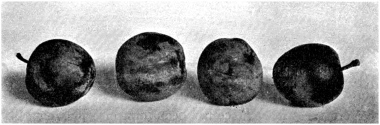 [Pg 88]Ordinary manure is not often given. It may cause rank growth. Dr Griffiths recommends the following artificials: 3 parts weight of kainit, 2 parts of superphosphate, 1 part of nitrate of soda. Three lbs. of this mixture should be applied to each tree shortly before active growth begins. If the land is deficient in lime or chalk some should be given to each tree.