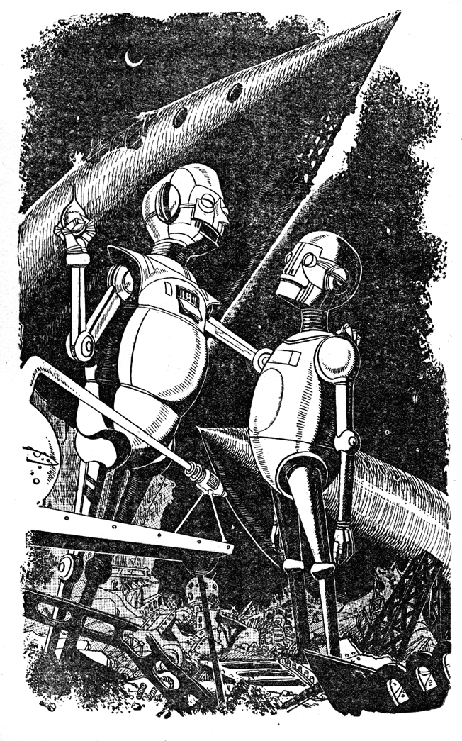 “Release him,” Langley said. “Droll fellows, these discarded robots. Really nothing but mechanical dolls, you know, but I think the old scientists made a mistake, giving them such human appearance, and such obstinate traits.”