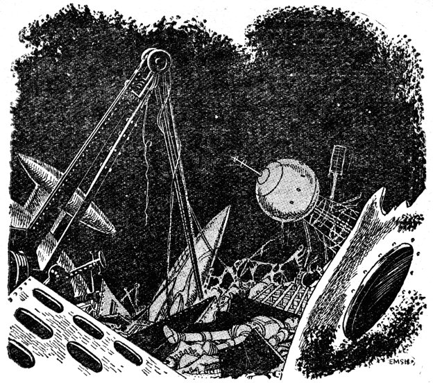 We did not go far that first morning. The half-track was driven to the edge of the Dumps. Within the Dumps one walks—or does not go. Phobos is an airless world, and yet so small that rockets are impractical. The terrain is broken and littered with the refuse of half a dozen worlds, but the Dumps themselves—that is different.