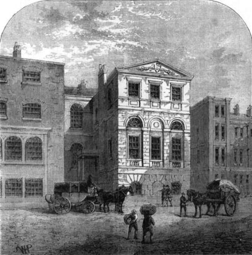 The Presbyterian Chapel in the Weigh-house was founded by Samuel Slater and Thomas Kentish, two divines driven by the Act of Uniformity from St. Katherine's in the Tower. The first-named minister, Slater, has distinguished himself by his devotion during the dreadful plague which visited London in 1625 (Charles I.). Kentish, of whom Calamy entertained a high opinion, had been persecuted by the Government. Knowle, another[Pg 1158] minister of this chapel, had fled to New England to escape Laud's cat-like gripe. In Cromwell's time he had been lecturer at Bristol Cathedral, and had there greatly exasperated the Quakers. Knowles and Kentish are said to have been so zealous as sometimes to preach till they fainted. In Thomas Reynolds's time a new chapel was built at the King's Weigh-house. Reynolds, a friend of the celebrated Howe, had studied at Geneva and at Utrecht. He died in 1727, declaring that, though he had hitherto dreaded death, he was rising to heaven on a bed of roses. After the celebrated quarrel between the subscribers and non-subscribers, a controversy took place about psalmody, which the Weigh-house ministers stoutly defended. Samuel Wilton, another minister of Weigh-house Chapel, was a pupil of Dr. Kippis, and an apologist for the War of Independence. John Clayton, chosen for this chapel in 1779, was the son of a Lancashire cotton-bleacher, and was converted by Romaine, and patronised by the excellent Countess of Huntingdon; he used to relate how he had been pelted with rotten eggs when preaching in the open air near Christchurch. While itinerating for Lady Huntingdon, Clayton became acquainted[Pg 1159] with Sir H. Trelawney, a young Cornish baronet, who became a Dissenting minister, and eventually joined the "Rational party." An interesting anecdote is told of Trelawney's marriage in 1778. For his bride he took a beautiful girl, who, apparently without her lover's knowledge, annulled a prior engagement, in order to please her parents by securing for herself a more splendid station. The spectacle was a gay one when, after their honeymoon, Sir Harry and his wife returned to his seat at Looe, to be welcomed home by his friend Clayton and the servants of the establishment. The young baronet proceeded to open a number of letters, and during the perusal of one in particular his countenance changed, betokening some shock sustained by his nervous system. Evening wore into night, but he would neither eat nor converse. At length he confessed to Clayton that he had received an affecting expostulation from his wife's former lover, who had written, while ignorant of the marriage, calling on Trelawney as a gentleman to withdraw his claims on the lady's affections. This affair is supposed to have influenced Sir Harry more or less till the end of his days, although his married life continued to flow on happily.[Pg 1160]