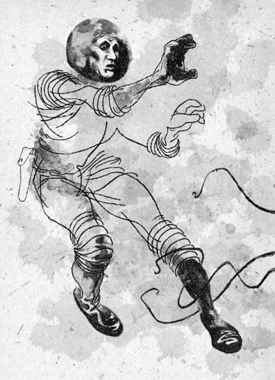 My job didn't really begin till the following evening, when Craig and Klein had completed a much larger glass cage, to which my outlandish—or, rather, outworldish—ward was transferred. Miller provided me with a wire-braced, airtight costume and oxygen helmet, the kind fliers use at extreme altitudes. Okay, call it a spacesuit. He also gave me a small tear-gas pistol, an automatic, and a knife.