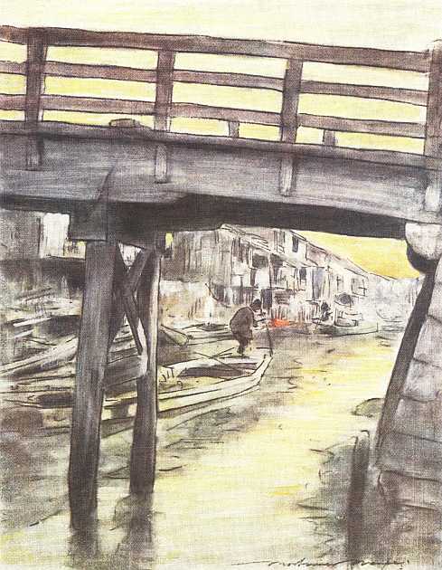 I have had many experiences, when sketching the streets of Japan, of the people’s politeness. A policeman becoming interested in my work would help to keep clear a space in the road, and never dream of overlooking my work or of embarrassing me in any way. In one street of a village he actually had the traffic turned down another way, so as not to interfere with my sketching. Fancy a policeman in England diverting the traffic simply because an artist wanted to sketch a meat shop!