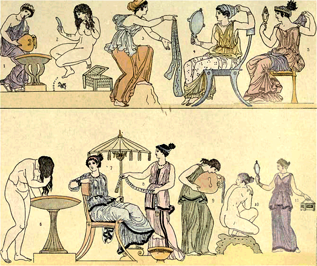 There are many indications pointing to the universal beauty of Homeric women. Thus a favorite epithet of the country is "Hellas, famed for fair women." There are also numerous epithets applied to Homeric characters significant of beauty, as "fair in form," "with beautiful cheeks," "with beautiful locks," "with beautiful breasts," and the like, demonstrating the universal love of physical beauty as well as the prevalence of beautiful types.