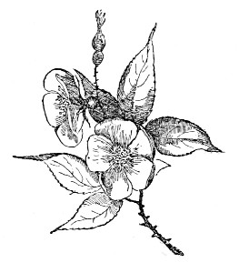 Thistle laughed and flew off to find the tulips, for he liked splendid flowers and lived like a king. First he robbed the violets of their honey, and shook the blue-bells roughly to get all their dew for his bath. Then he ruffled many leaves before his bed suited him, and after a short nap was up and away having what he called fun. He chased the butterflies and hurt them with the sharp thorn he carried for a sword; he broke the cobwebs laid to bleach on the grass for fairy cloth; he pushed the little birds out of the nest and killed them; he stole pollen from the busy bees, and laughed to see them patiently begin to fill their little bags again. At last he came to a lovely rose-tree with one open flower and a little bud.