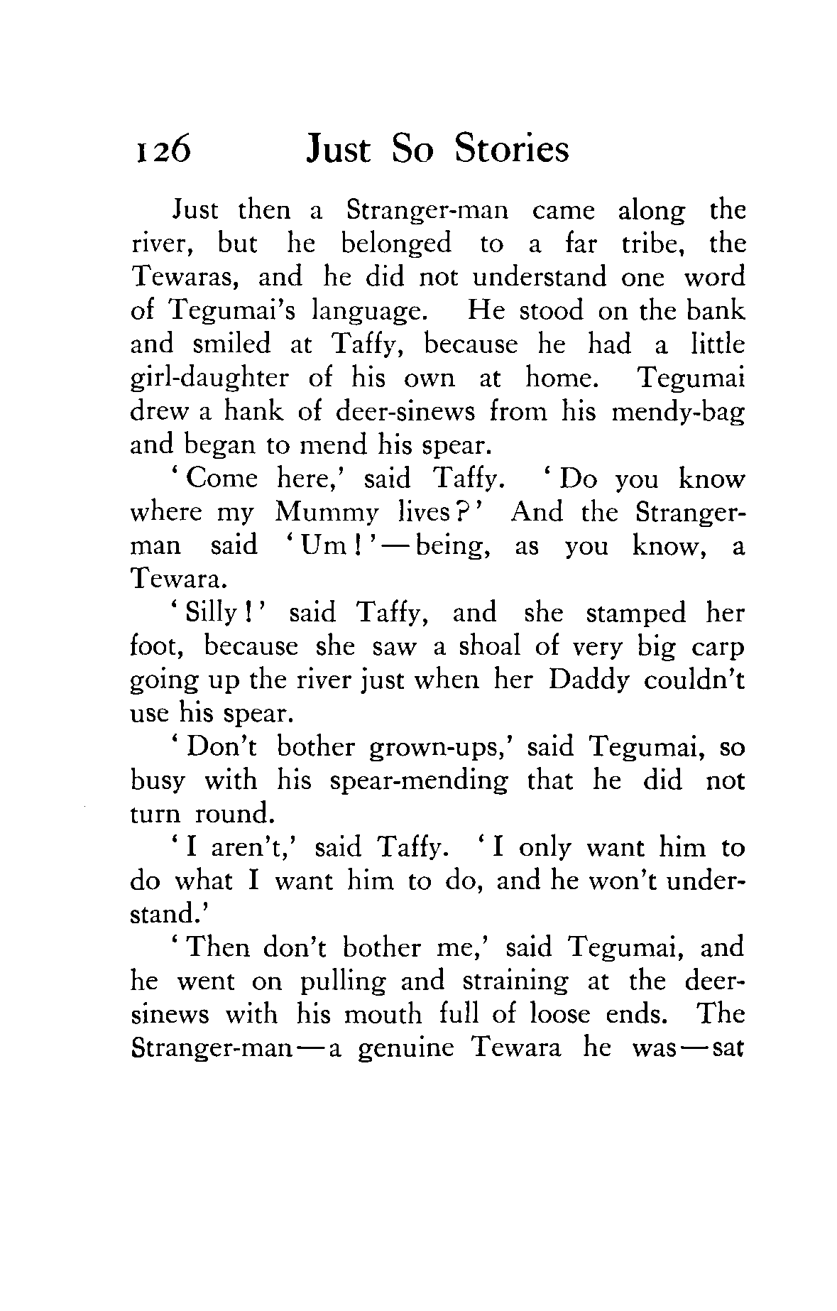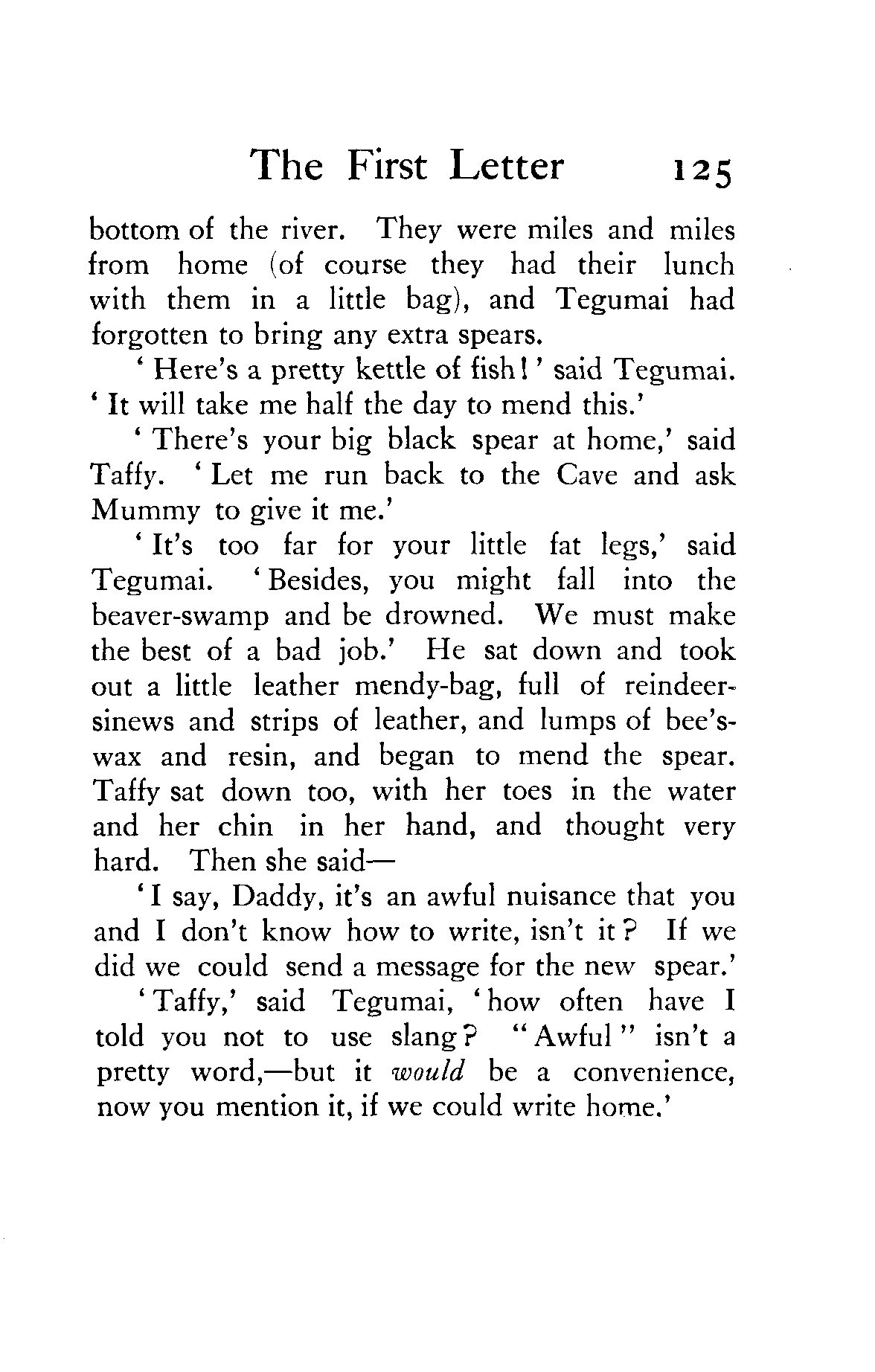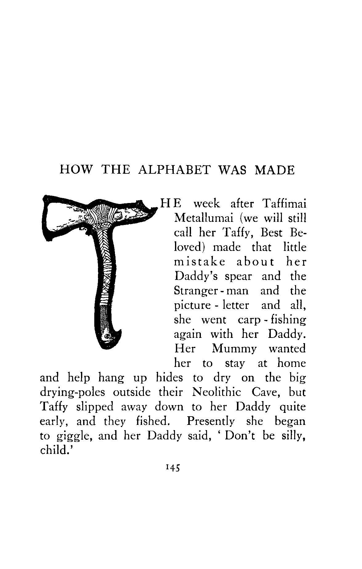 'Not when I am near,' said the Man. 'If you had not said that last I would have put all these things away for always and always and always; but I am now going to throw my two boots and my little stone axe (that makes three) at you whenever I meet you. And so shall all proper Men do after me!'