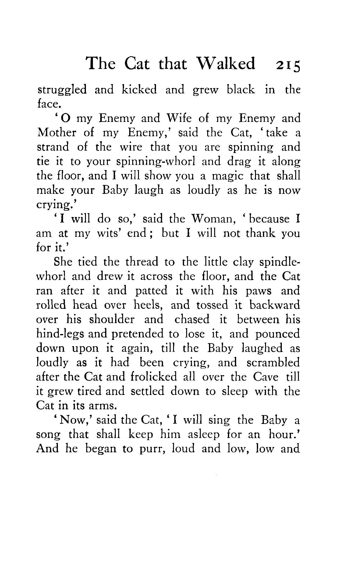 But the Baby cried because the Cat had gone away, and the Woman could not hush it, for it[215] struggled and kicked and grew black in the face.