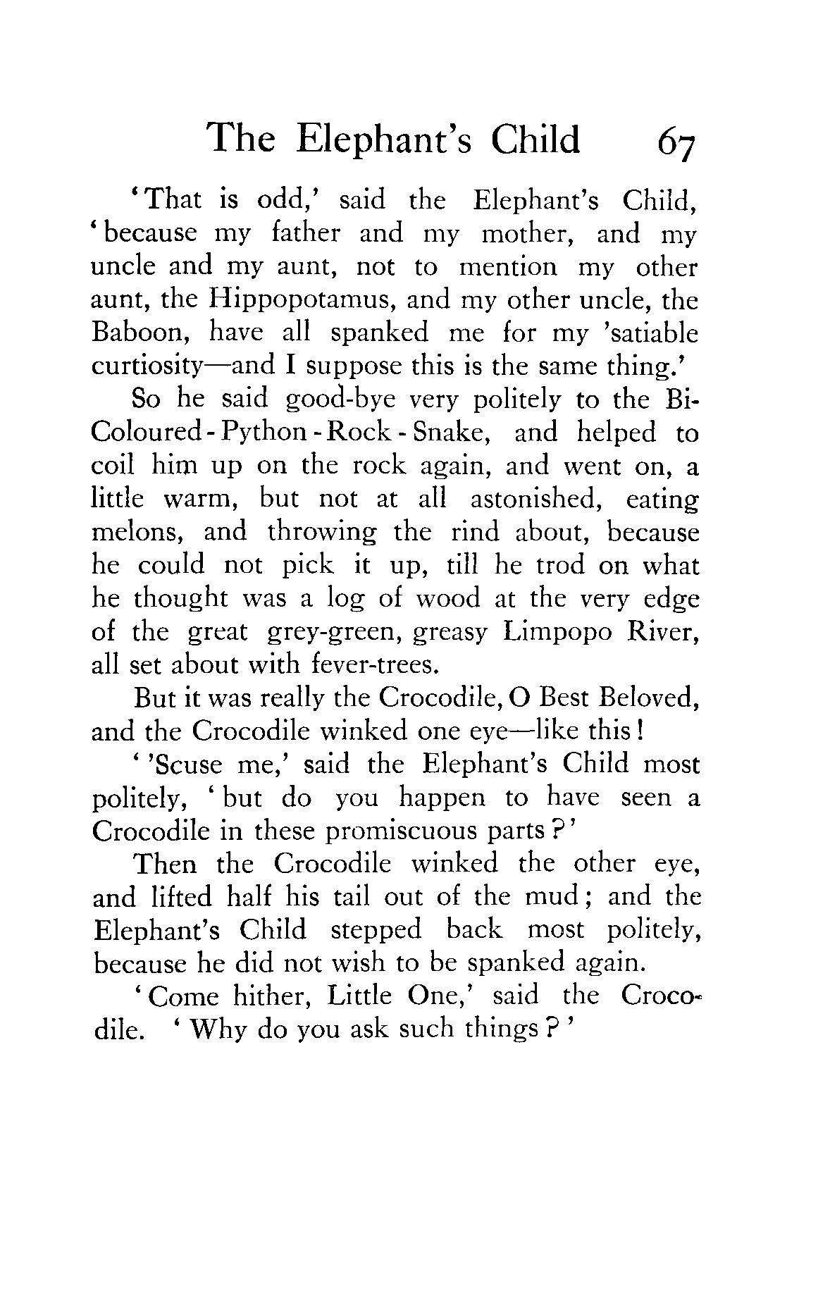 Said the Ethiopian to Baviaan, 'Can you tell me the present habitat of the aboriginal Fauna?' (That meant just the same thing, but the Ethiopian always used long words. He was a grown-up.)
