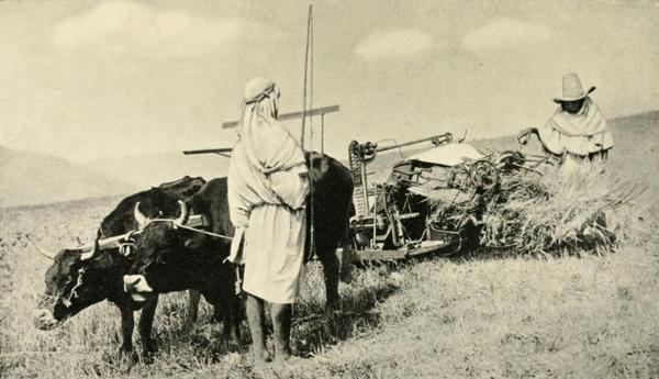 There are few harvesters in Asia Minor,[Pg 153] where farmers live almost like groundhogs—a whole family in one windowless hut of burnt clay. And there are fewer still in Africa, where five million idle acres of fertile land will some day be made to work for the human race.