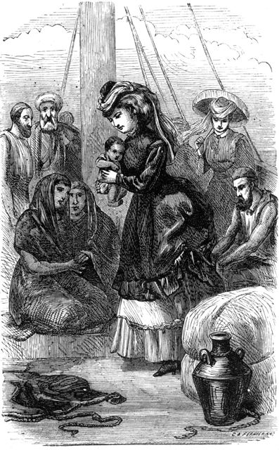 It made us very sad to see these poor creatures, who were bought and sold like animals, without the knowledge of a Saviour and his love and mercy to support them in their sorrows. We longed to speak to them of Jesus Christ and his love; but, alas! they could not understand us, nor we them. Rahaba was crouched on deck by Miss Roper's side, and her eyes were flashing with eagerness.