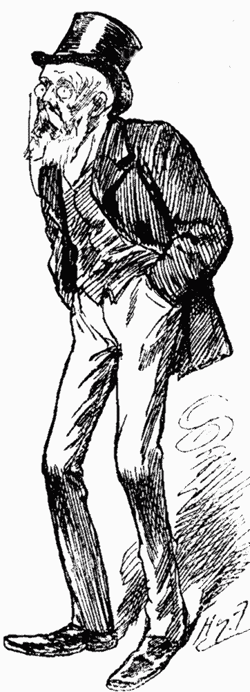 Tuesday.—Wolff at door of both Houses. In fact he's there every night now. Peers and Commons are Unionists in desire to know when the pic-nic will be over, or, as Bryce put it to-night amid cheers, "When will finally and positively terminate the unparalleled and undignified position in which the country is placed?" In Lords the Markiss disowned a capital retort the reporters invented for him. On Monday, Rosebery understood to ask whether Wolff was[Pg 36] supposed to be in a state of suspended animation what time the Sultan made up his mind. The Markiss reported to have replied that Wolff was "rather in a state of animated expectancy." Capital capping of a joke, only it appears Markiss isn't personally responsible for it.