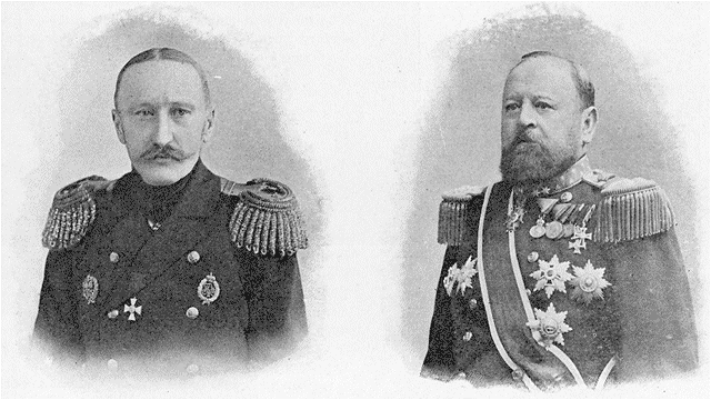 | L'amiral Doubassov (Russe).--Phot. Levitsky. | L'amiral baron de Spaun (Autrichien).--Phot. Grillich. |
