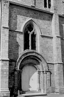 203. Sartilly. The Romanesque gate was the west gate of the Romanesque church, and is now the south gate of the church that replaced it. The Romanesque church, which was ready to collapse, was demolished and replaced in 1858 by a much larger building of Gothic inspiration. Photo by Marie Lebert. [Marie-10]