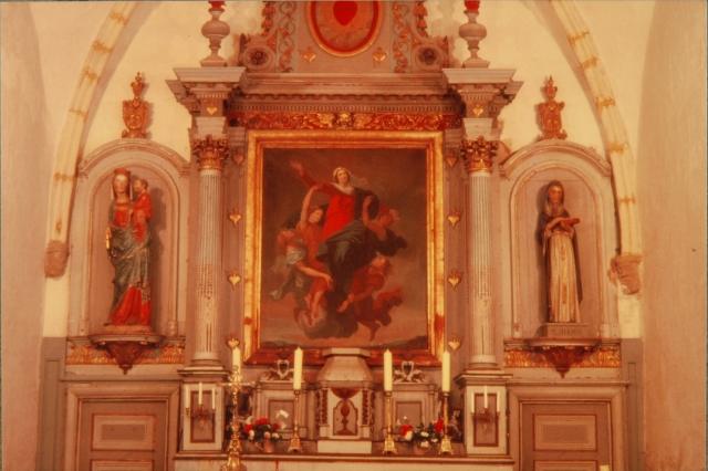 038. Bréville. Détail du grand autel, dans le chevet du chœur. La statue de Notre Dame, sainte patronne de l'église. Photo d'Alain Dermigny. [Alain-021]