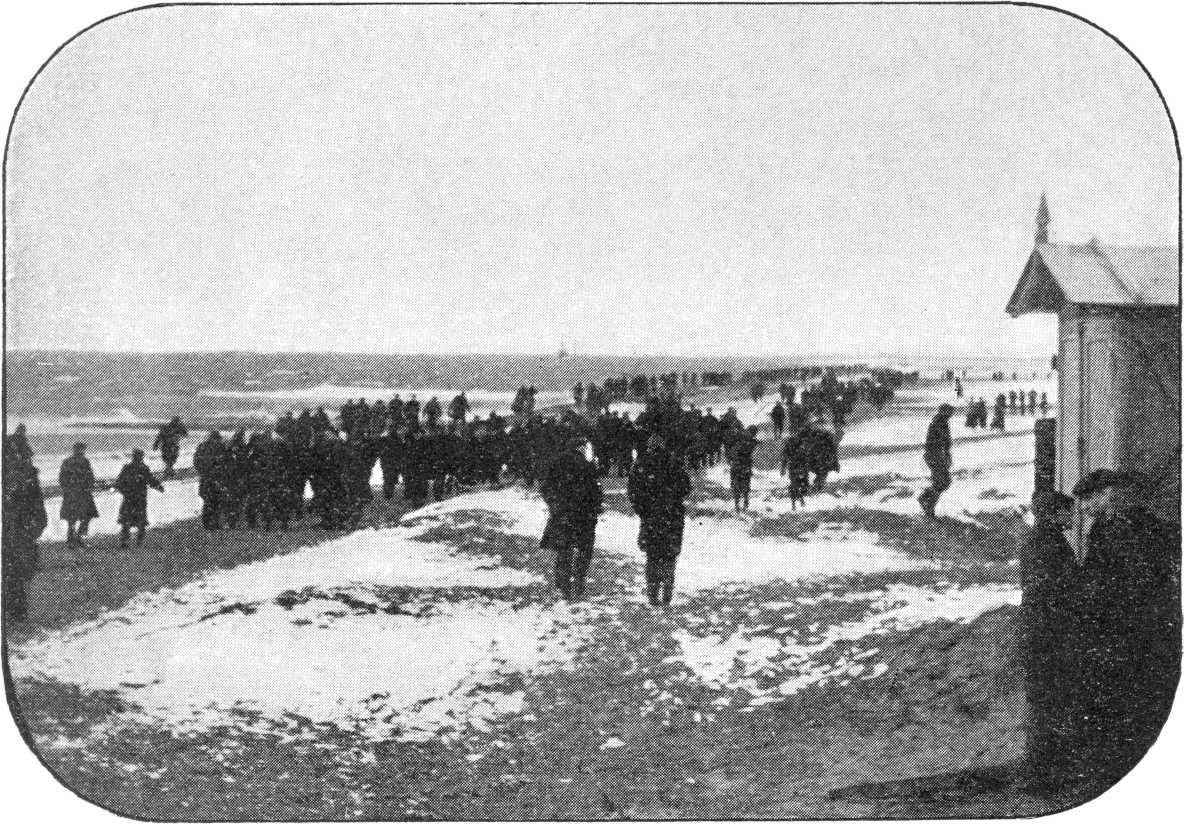 Nu en dan zag men op het strand, verderop naar den kant van Scheveningen, een troepje menschen samenscholen om een donkere figuur die neergestrekt lag op het bleeke zand. Dan holden de nieuwsgierigen bij tien- en twintigtallen daarheen, onbegrijpelijk-belust op een luguber schouwspel: dan was er een lijk aangespoeld.