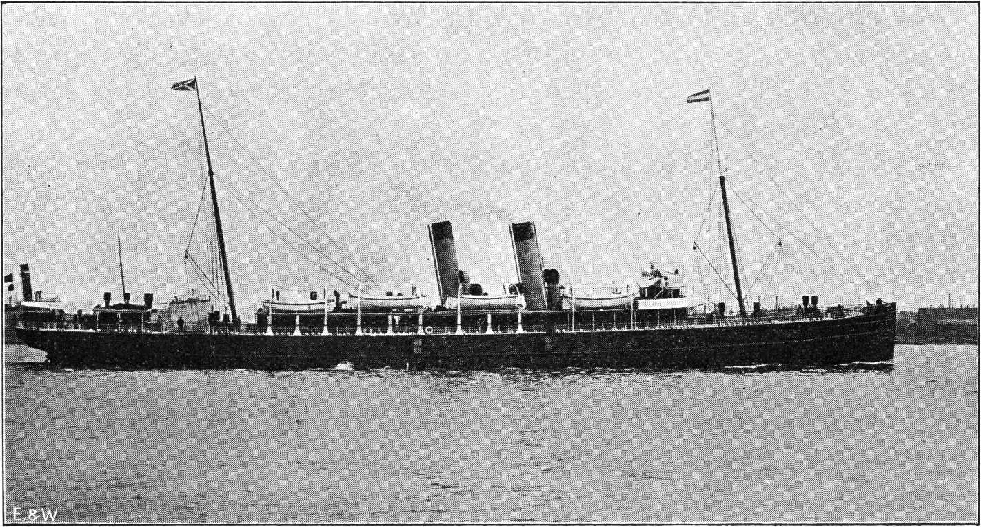»Hij en ongeveer 100 opvarenden waren toen op het voorschip, dat ongeveer half negen van het achterdeel afbrak en alle opvarenden naar de diepte meenam. Het gelukte kapitein Parkeson een stuk wrakhout te grijpen en zich daarop zoo lang drijvende te houden tot hij nog zelf de stoomreddingboot kon aanroepen.