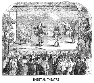 p. 300The most important of the Lamaseries of Lithang possesses a great printing press for Buddhic books, and it is hither that, on holidays, the Lamas of the neighbouring countries come for their supplies. Lithang carries on also a large trade in gold dust, in chaplets of black beads, and in cups made with the roots of the vine and box-tree. As we departed from Lithang, the Chinese garrison was under arms, to render military honours to Ly-Kouo-Ngan. They acted just as if he had been alive. When the coffin passed, all the soldiers bent their knees and exclaimed: “To the Tou-Sse, Ly-Kouo-Ngan, the poor garrison of Lithang wishes health and prosperity.” The petty Mandarin, with the white button, who had become our guide, saluted the garrison in the name of the deceased. This new commander of the caravan was a Chinese of Moslem extraction; but one could find nothing about him which seemed to belong in the least to the fine type of his ancestors: his puny, stunted person, his pointed smiling face, his shrill treble voice, his trifling manners, all contributed to give him the air of a shop-boy, and not in the least that of a military Mandarin. He was a prodigious talker. The first day he rather amused us, but he soon became a bore. He thought himself bound, in his quality of Mussulman, to talk to us, on all occasions, about Arabia, and of its horses that are sold for their weight in gold; about Mahomet, and his famous sabre that cut through metals; about Mecca and its bronze ramparts.