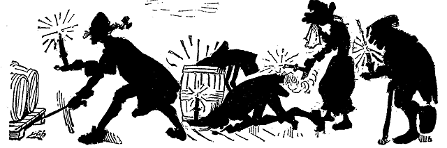 XLVI Au comble de la colère Lustucru pèse à nouveau Les moyens de se défaire De ce sorcier de chat échappé du tombeau. |