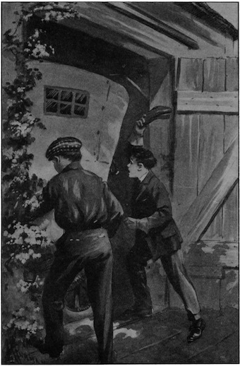 Down he went, the intended kick going wild. At the same moment Phil, having dropped the suitcase, sprang upon the man and with Billy’s ready aid, managed to bind both legs fast together, so that he lay helpless. After that the boys dragged their prisoner across the porch, then they carried him to where the car stood amid the shrubbery and placed him in the tonneau.