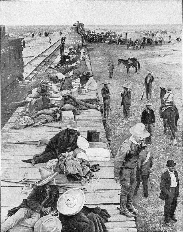 Quoi qu'il en soit, on juge par ce cliché combien cette guerre doit être rude: voici comment sont traités les blessés, recueillis et transportés sur de simples plates-formes, sans couchettes, sans abri, et soignés par des infirmières bénévoles qui accompagnent l'armée. Qu'on s'étonne, après cela, de la cruauté des représailles!