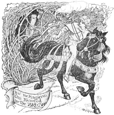 Three times during the day food appeared, as if by magic, for the prince and his servants. And it was not until supper was ended that the wizard appeared, as on the previous evening, and delivered the princess into the care of the prince.