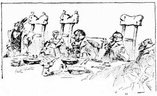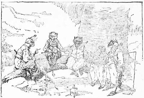 After they had looked at each other for about a minute they all began to laugh, and they laughed and laughed till they cried, and rolled on the ground and kept on laughing to think how they all had fooled each other and been fooled themselves. Then they all hurried off on a big hunt for game, and didn't get back till sunrise.[Pg 28]