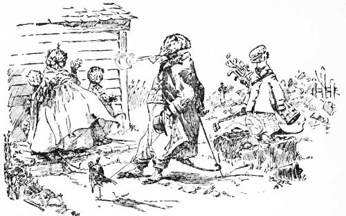 Yes, crows always do, and hide them that way. Well, he didn't say anything, but he slipped down stairs and gathered up some of the chicken bones under the table and some pieces of bark and sticks, and brought[Pg 16] them up to his own part of the house and shut the door. Then he kindled a little fire in the stove with the sticks and opened his outside door a crack and got a skillet full of snow and put it on, and when the snow melted he dropped in the chicken bones and let them stew, and then a little of the flour and some pepper and salt and stirred it, and he had some nice gravy.