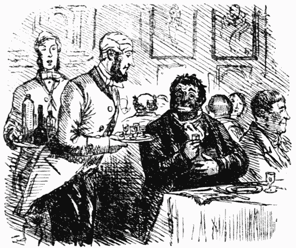 Waiter (with perfect composure). "We have some cheap wine, sir, at half-a-guinea!"