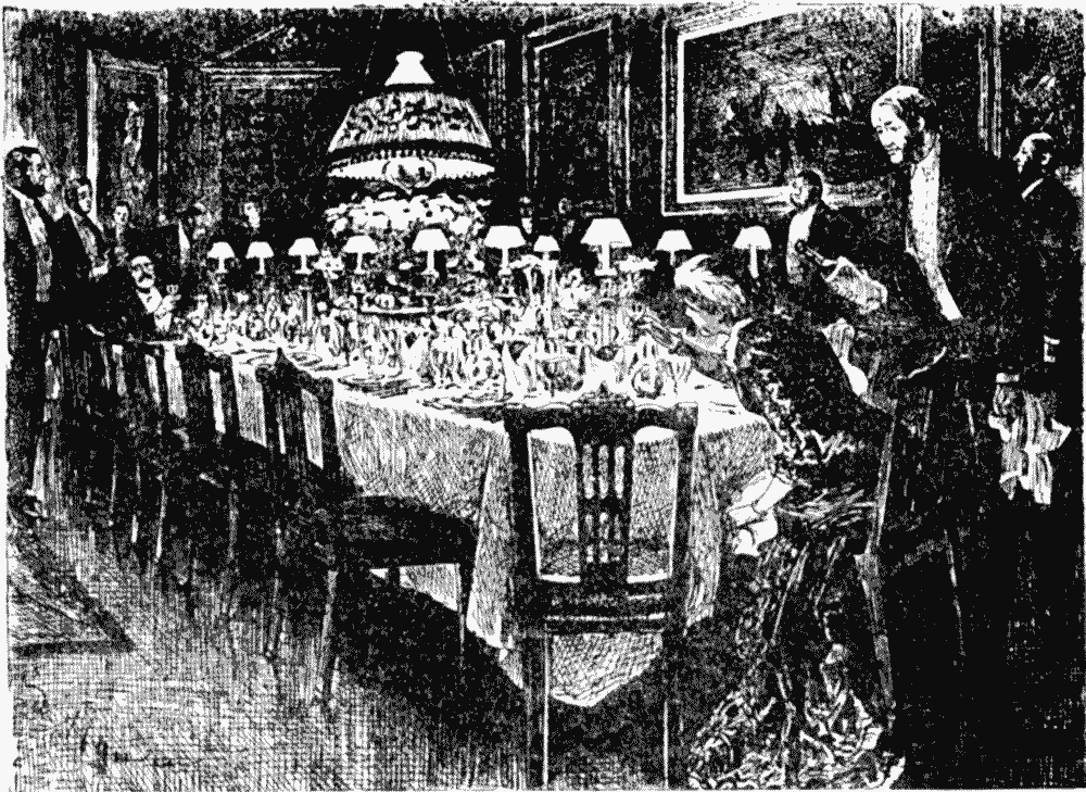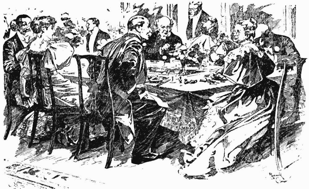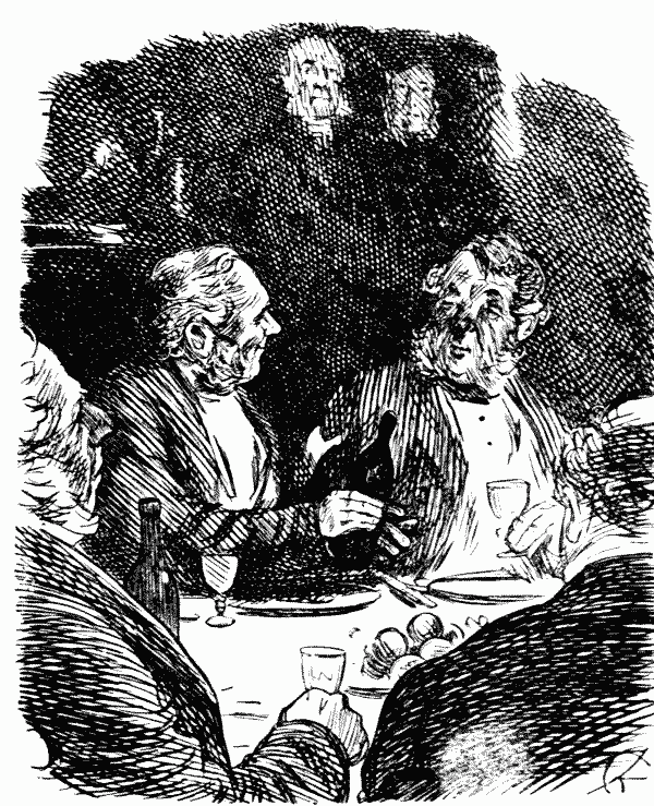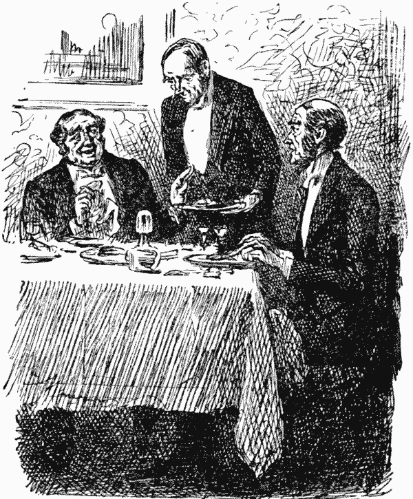 It must not, therefore, be thought that the present volume is in anywise distinguished from the others of the series to which it belongs in the appropriateness of its contents for the dinner party. No more than any of its companions is it designed to that end; but as it is concerned almost exclusively with the humours of dining, with stories of diners, it will be admitted that its title is not without justification. Private dinner parties, public banquets, the solitary dinner at the restaurant, the giving and accepting of invitations, these and many other phases of dining come within its scope, and if it be noticed that a considerable amount of its humour has something of the fragrance of good old port—to say nothing of the aroma of wines that are[Pg 6] bad!—it can only be retorted that Mr. Punch's duty has ever been to mirror the manners of the changing time, and in his early days the wine flowed more freely than it does to-day. For our personal taste we could have wished less of this humour of the bottle, but throughout this library an effort has been made to maintain in some degree a historical perspective, so that, in addition to the prime purpose of entertainment, each of these books in Mr. Punch's Library might be a faithful picture of the manners of the Victorian period in which most of his life has been passed. If to-day these manners seem to us just a trifle coarser than we esteem the social habits of our own day, surely that is a comforting reflection and one not lightly to be lost!
