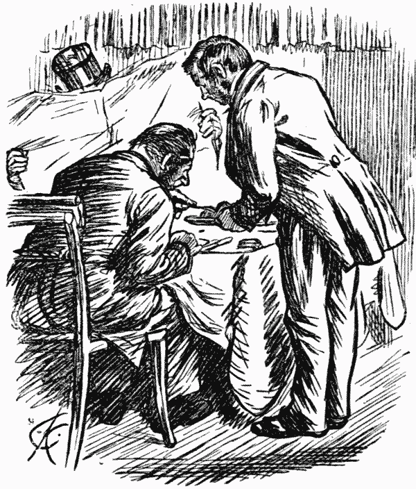 Scene.—A "cheap" chop-house not a hundred miles from L—nd—n.