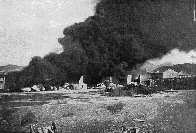 Le général nippon promit alors que son artillerie les épargnerait autant que possible. Les photographies reproduites ici montrent qu'il ne put tenir sa promesse.