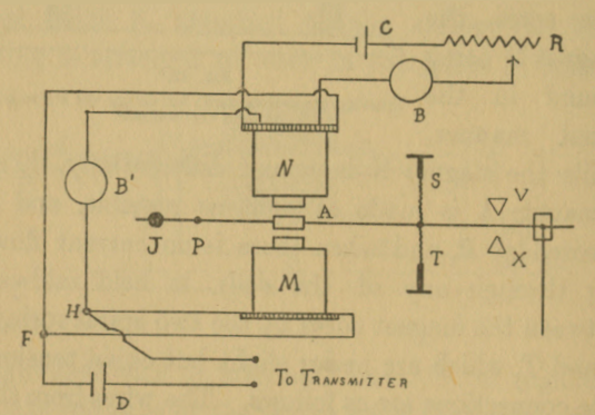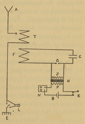 [4] In wireless telegraphy "arcing" is principally caused by the continuation of the supply current in the spark-gap after the capacity has been charged to a potential sufficient to break down the insulation of the gap.