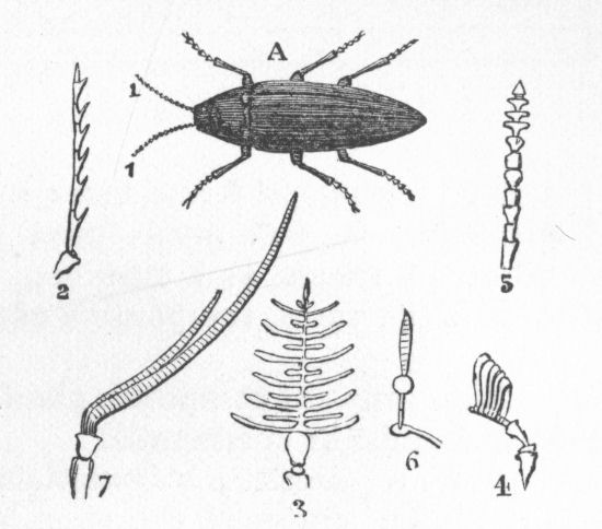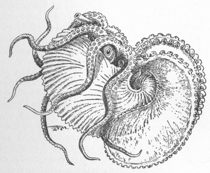 Am´monites, a group of fossil cephalopods, now divided into a large number of genera, ranging from the Coal Measures (Texas) to the uppermost cretaceous strata. The ammonites differ from the nautili in having the tube connecting the chambers placed on the outer margin of the coiled shell, while the calcareous neck where it passes through the partitions is directed forwards. The partitions are much folded, producing markings like the fronds of ferns where they meet the inner wall of the shell. The name arises from confusion with a coiled gastropod, which was held to resemble the horns of the Egyptian deity Jupiter Ammon.