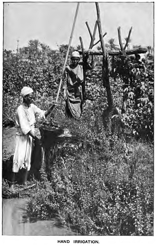 To begin with, the land is here generally pure sand, but after flooding with Nile water, which is often available without pumping—i.e. free flow—the sand gets mixed with the Nile mud and a good soil is rapidly formed.