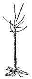 The land on which an orchard is to be planted should have been in cultivation at least two years previous to setting the trees and be in a fine physical condition. Dig the hole broad and deep enough to take in all the roots left after pruning off the bruised ends caused by digging up the tree, and trim back the branches at least two-thirds, making a smooth cut. Set the trunk in the center of the hole, and sift the fine dirt down through the roots, slightly lifting the tree once or twice in order that the fine soil may settle under the roots, making congenial soil for the new roots to run through. Fill in over the roots, gradually firming the soil[15] above with the feet. When the hole is full, firm the soil around the trunk to prevent whipping by the wind, leaving the surface level. If the trees are set in the fall a slight earthing up to the trunk may be beneficial in certain soils, and if set in a dry spring a mulch of straw or grass will benefit them. Two- or 3-year-old trees (usually the latter) are the most desirable for planting in home grounds. Commercial orchards are often planted exclusively with 2-year-olds.