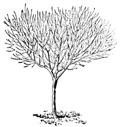 It is ordinarily advisable, especially in the humid climates east of the Great Lakes, to have the body of the tree 3½ to 4½ ft. long. The limbs should be trimmed up to this point when the tree is set. From three to five main branches may be left to form the framework of the top. These should be shortened back one-fourth or one-half when the tree is set. Subsequent pruning should keep the top of the tree open and maintain it in more or less symmetrical form. See Pruning.