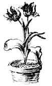 Amaryllis. Popular name of a variety of house or conservatory tender bulbs, but properly applied only to the Belladonna Lily. Most of them are hippeastrums, but the culture of all is similar. They are satisfactory house plants. The one objection to their culture is the habit of the flower-stalk starting into growth before the leaves start. This is caused in most cases by stimulating root growth before the bulb has had sufficient rest. The bulbs should be dormant for four or five months in a dry place with a temperature of about 50°. When wanted to be brought into flower, the bulbs, if to be repotted, should have all the dirt shaken off and potted in soil composed of fibrous loam and leaf-mold, to which should be added a little sand. If the loam is a heavy one, place the pot in a warm situation; a spent hotbed is a good place. Water as needed, and as the flowers develop liquid manure may be given. If large clumps are well established in 8- or 10-inch pots, they may be top-dressed with new soil containing rotted manure, and as growth increases liquid manure may be given twice a week until the flowers open. After flowering, gradually withhold water until the leaves die. The most popular species for window gardens is A. Johnsoni (properly a hippeastrum), with red flowers.