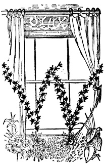 In the fall the box may be placed on the inside of the[244] window. In this case it will be desirable to thin out the foliage somewhat, shorten in some of the vines, and perhaps remove some of the plants. It will also be desirable to give a fresh coating of rich soil. Increased care will be necessary, also, in watering, since the plants will have less light than previously, and, moreover, there may be no provision for drainage.