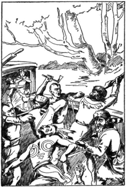 On—on she led them like the ignis fatuus, brushing through the dripping branches, tumbling over the gnarled and twisted roots, splashing through the watery hollows, tearing their way through the tangled undergrowth, until after many a mile had been passed and hours had elapsed, she halted and said: