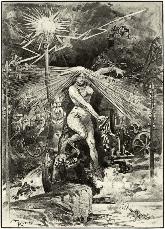 L'Électricité, c'est la Grande Esclave. Respiration de l'univers, fluide courant à travers les veines de la Terre, ou errant dans les espaces en fulgurants zigzags rayant les immensités de l'éther, l'Électricité a été saisie, enchaînée et domptée.