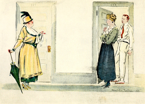 "I'll call Mrs. Hatch up this forenoon," she says, "and see if they want us to come over there this evenin'. But if we do go remember not to mention our club or tell 'em anything about the party."