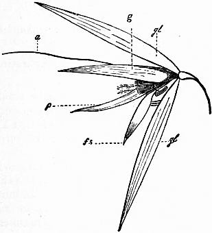 | a, b, Short axis of the wing (axis for tip of wing, h). c, d, Long axis (axis for posterior margin of wing, h, i, j, k, l). m, n, Short axis of rowing feathers of wing. | r, s, Long axis of rowing feathers of wing. The rotation of the rowing feathers on their long axis (they are eccentrics) enables them to open or separate during the up, and close or come together during the down strokes. e f, g p, concave shape presented by the under surface of the wing. |