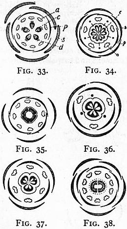 The compound rotation of the wing is greatly facilitated by the wing being elastic and flexible. It is this which causes the wing to twist and untwist diagonally on its long axis when it is made to vibrate. The twisting referred to is partly a vital and partly a mechanical act;—that is, it is occasioned in part by the action of the muscles and in part by the greater resistance experienced from the air by the tip and posterior margin of the wing as compared with the root and anterior margin,—the resistance experienced by the tip and posterior margin causing them to reverse always subsequently to the root and anterior margin, which has the effect of throwing the anterior and posterior margins of the wing into figure-of-8 curves, as shown at figs. 9, 11, 12, 16, 18, 20, 21, 22 and 23.